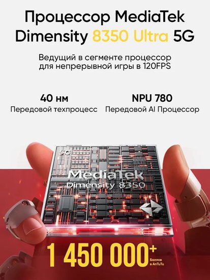 • Микроархитектура ЦПУ ARM Cortex-A715 3350 МГц + ARM Cortex-A715 3200 МГц + ARM Cortex-A510 2200 МГц