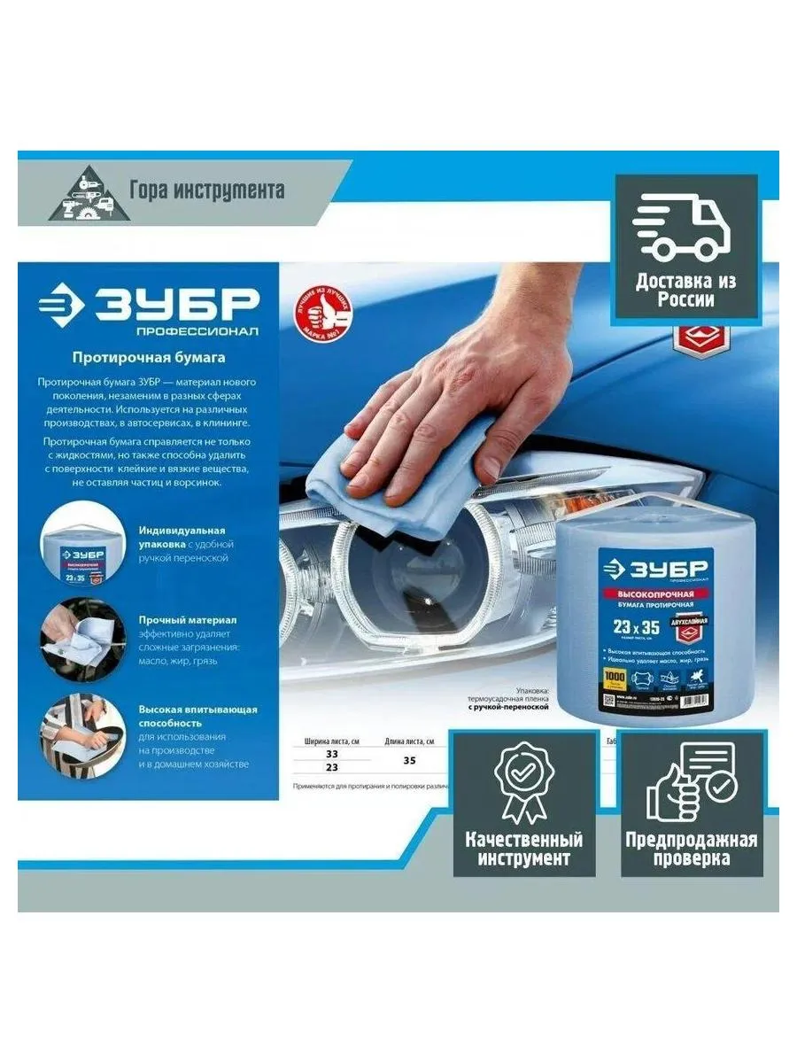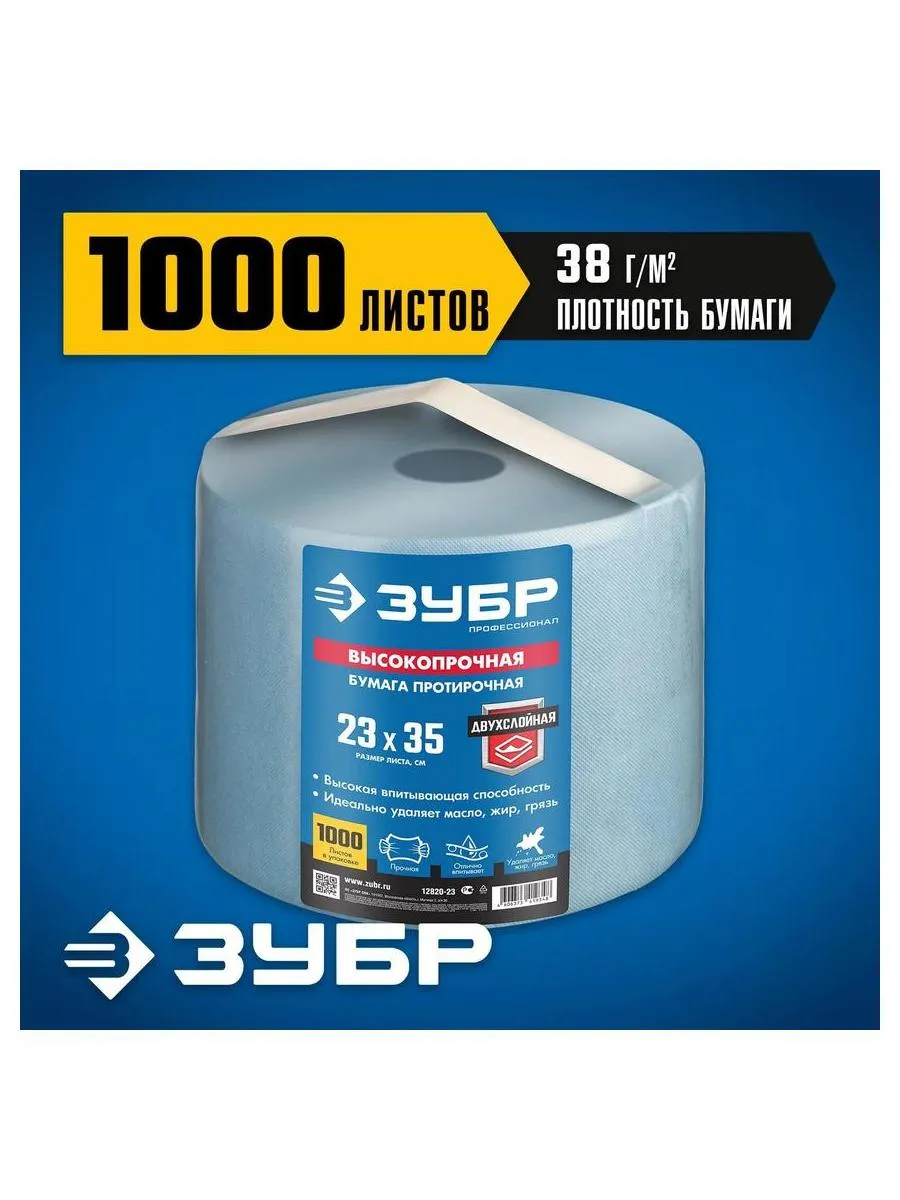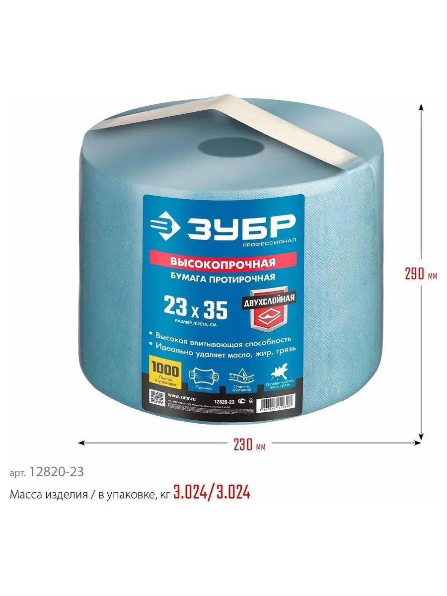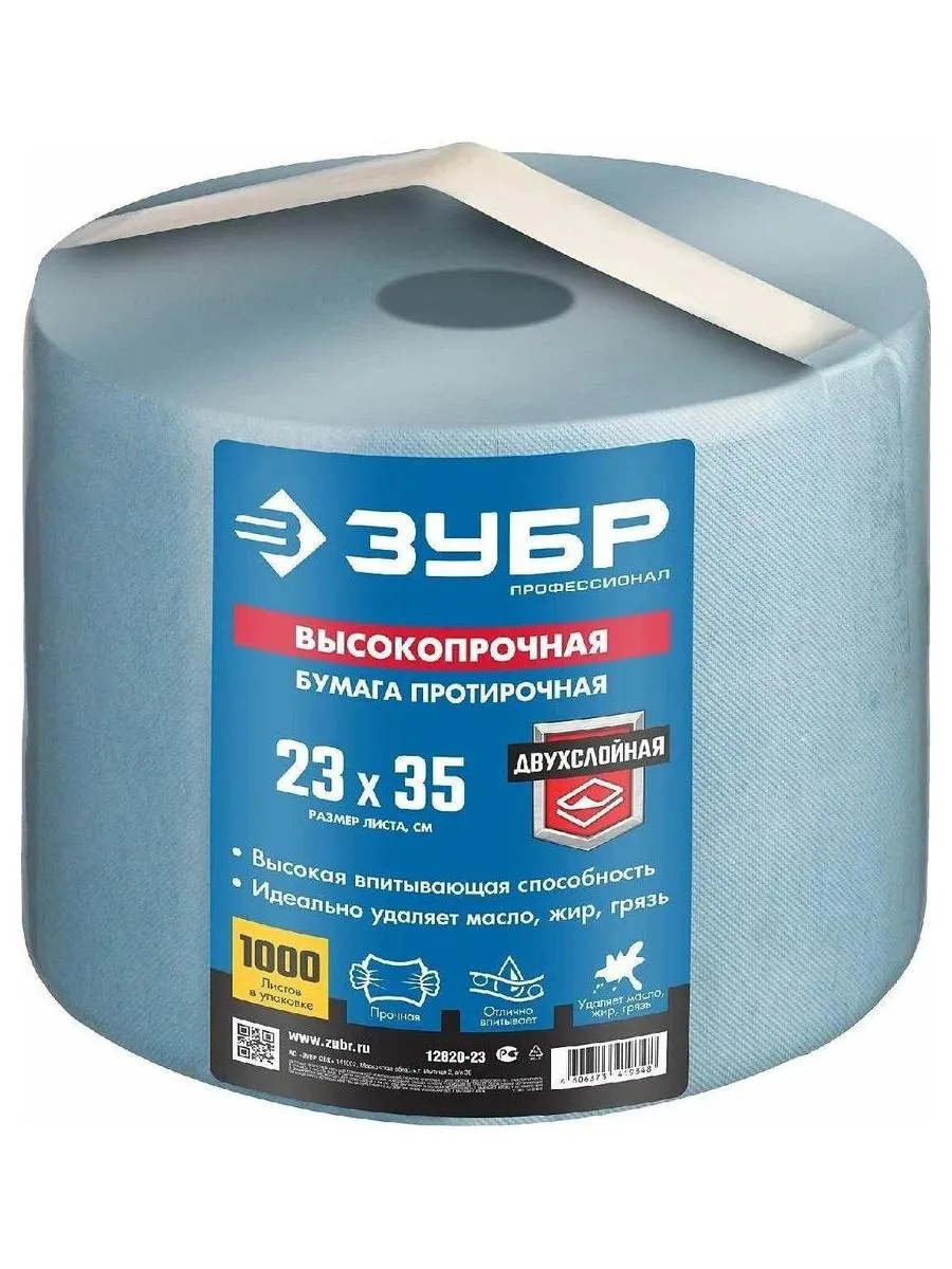 Описание товара Бумага протирочная ЗУБР 23 х 35 см, 2-х слойная, в рулоне, 1000 листов, Профессионал (12820-23)