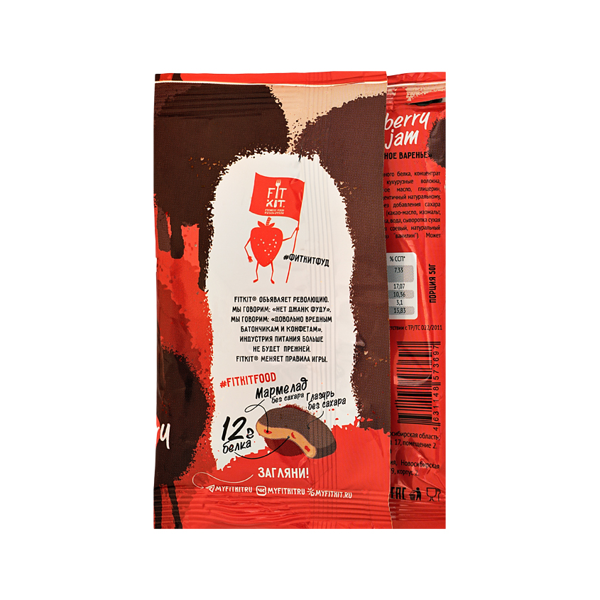 Печенье глазированное `FIT KIT` PROTEIN COOKIE с высоким содержанием белка со вкусом Клубничное варенье 50 г