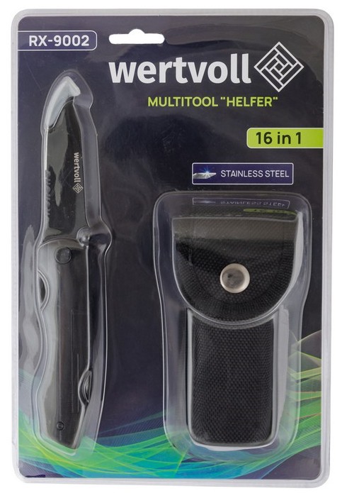 • Функции и возможности консервный ножоткрывалка для бутылокшлицевая отверткаплоскогубцыкусачкистрипперпереходник под биту / + набор бит /