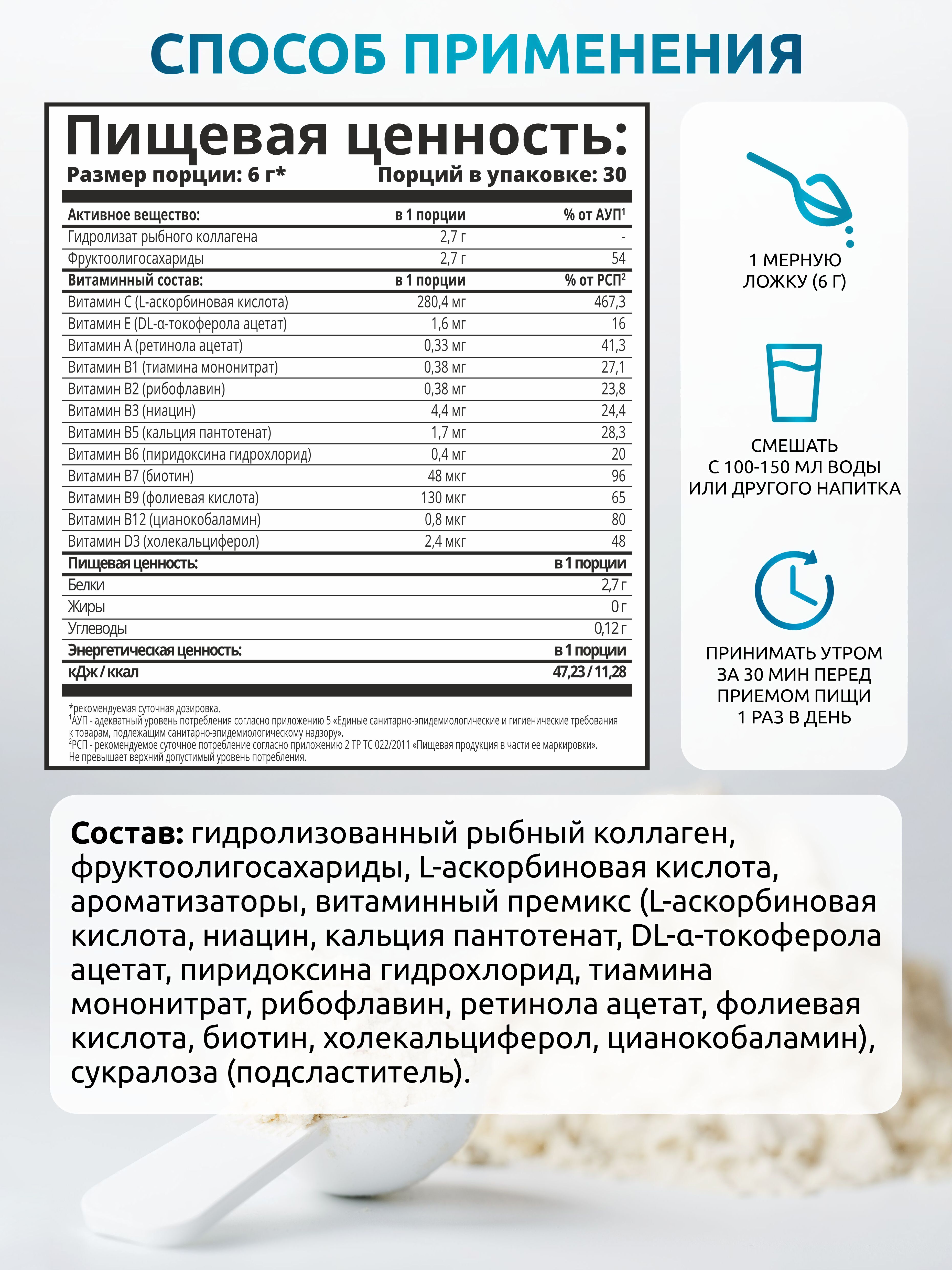 • Энергетическая ценность порции 11.28 ккал (47.23 кДж)