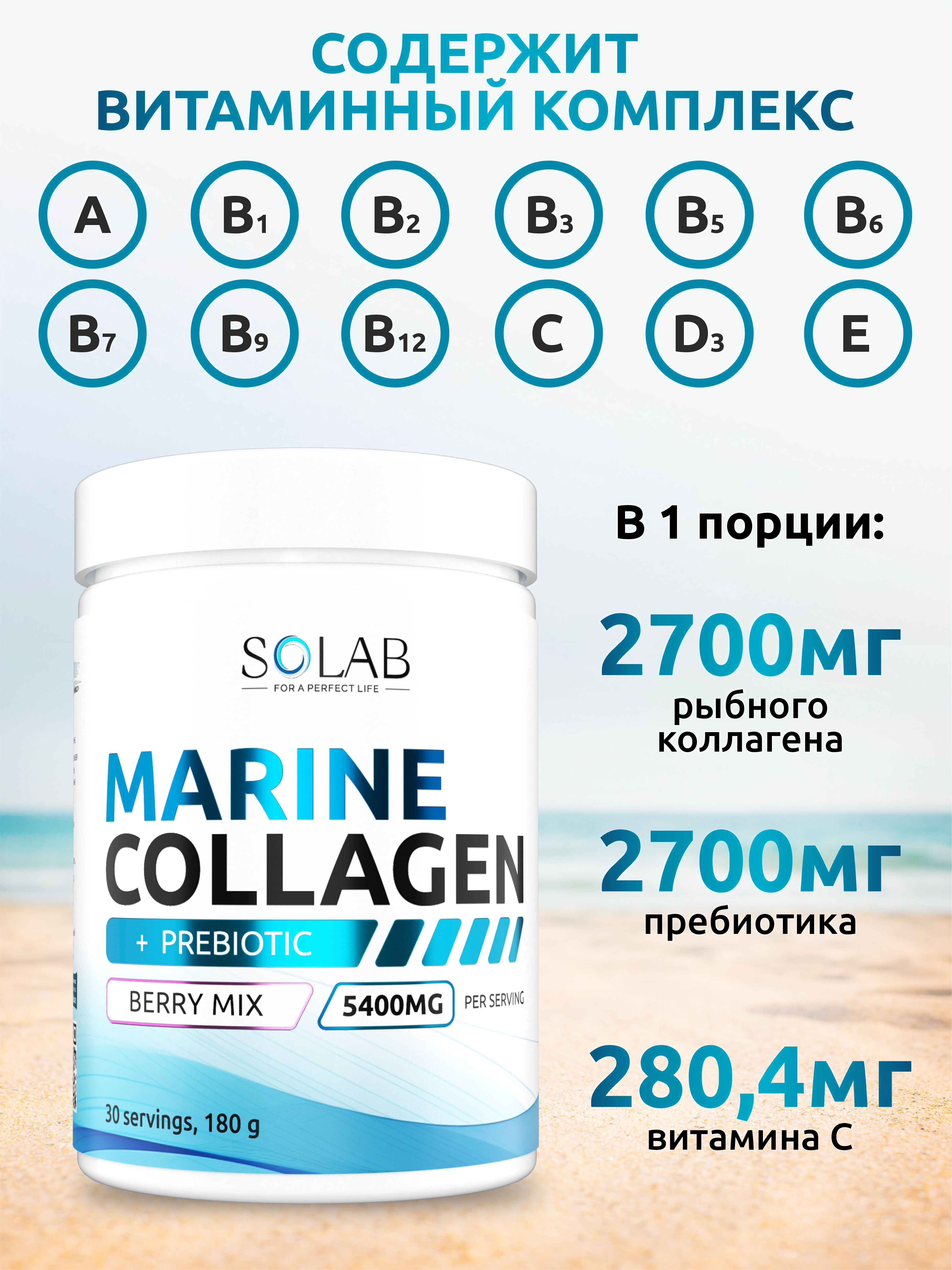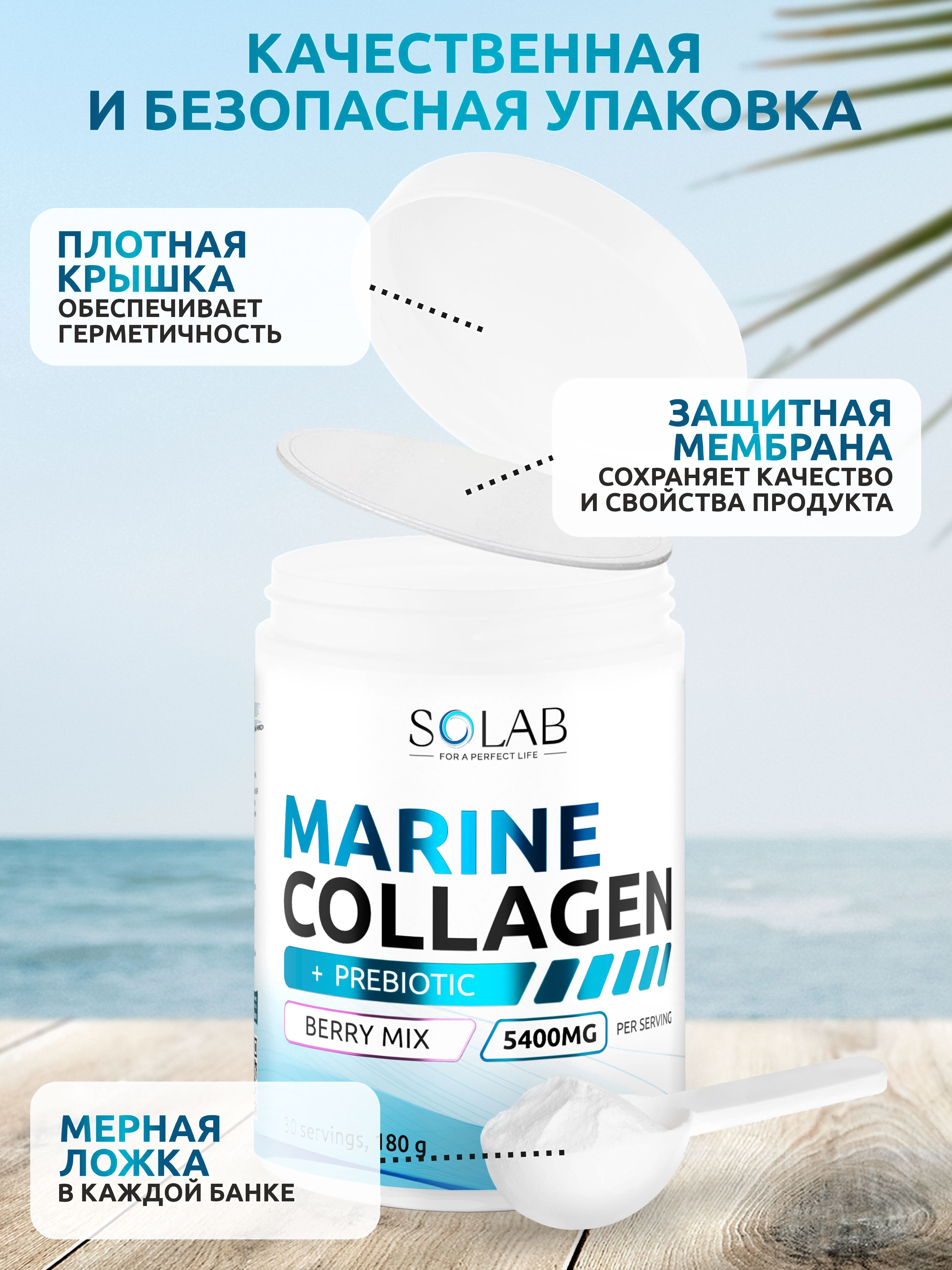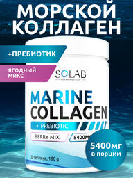Коллаген SOLAB Морской с пребиотиком и витамином С (180г, ягодный микс)