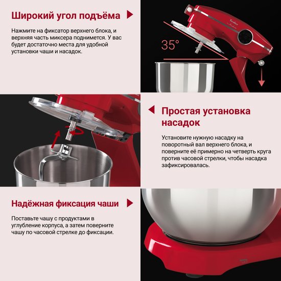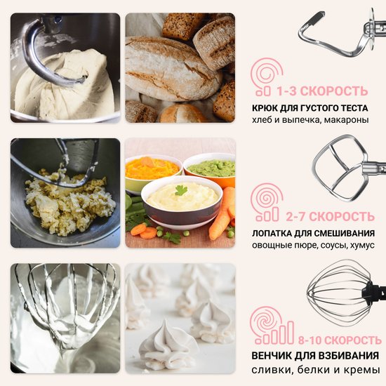 • Функции взбивание, смешивание, замешивание дрожжевого теста
