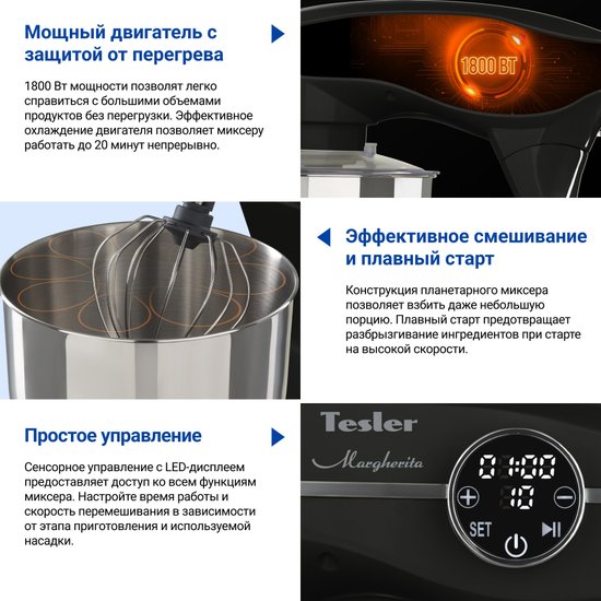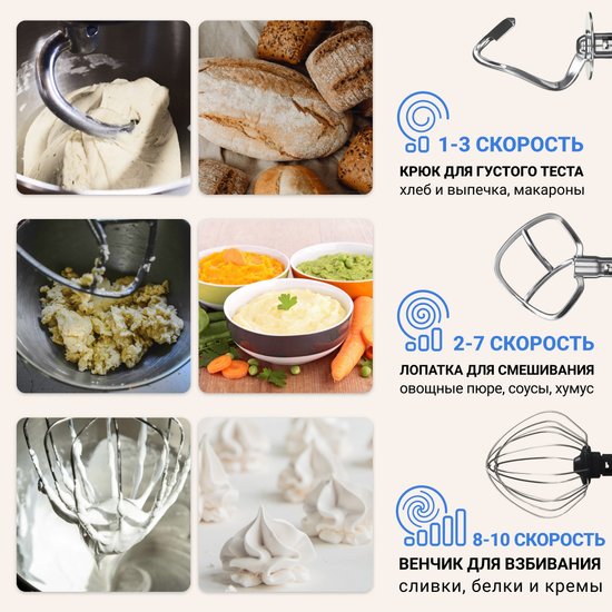• Функции взбивание, смешивание, замешивание дрожжевого теста