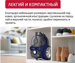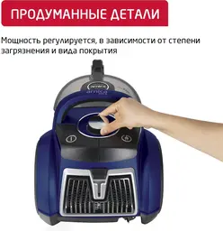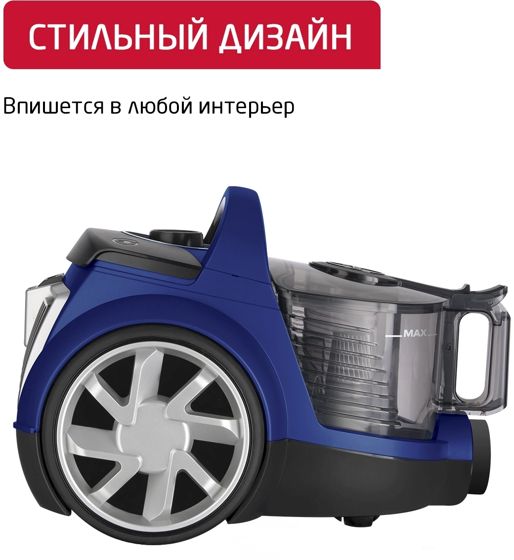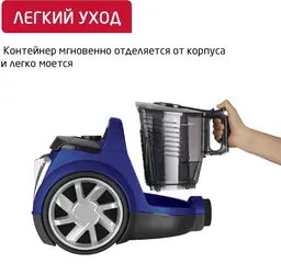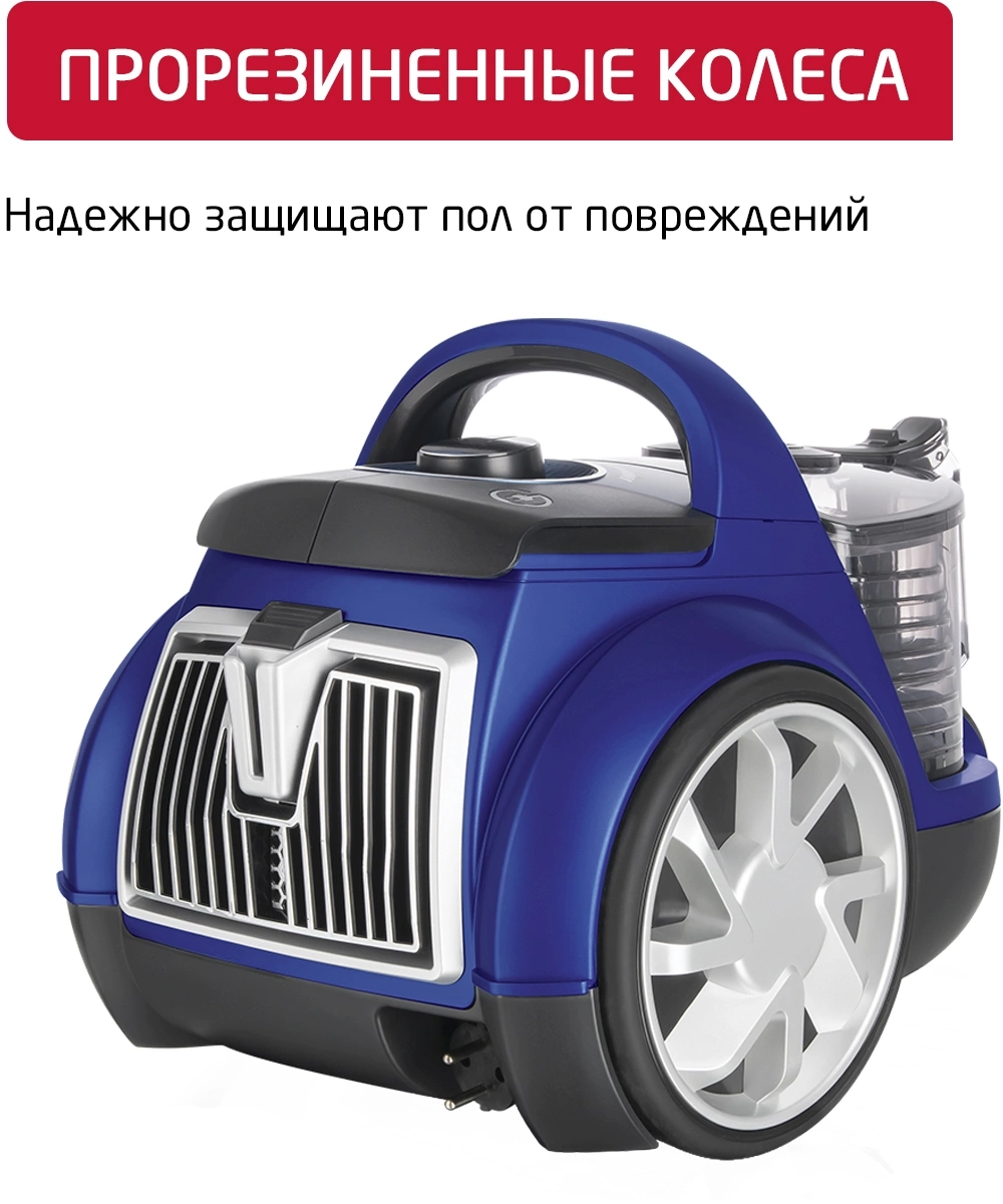 Особенности пылесосалегко очищаемый пылесборник, место для хранения насадок, прорезиненные колеса, шланг