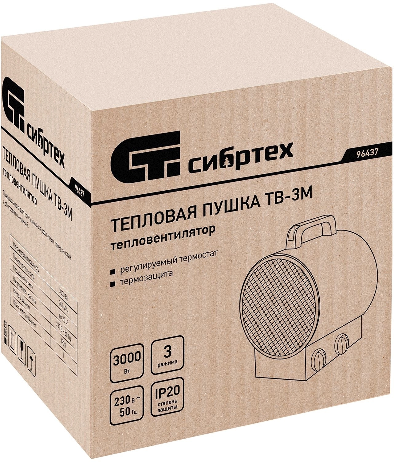 Тепловая пушка электрическая Сибртех ТВ-3М 3000Вт синий/черный