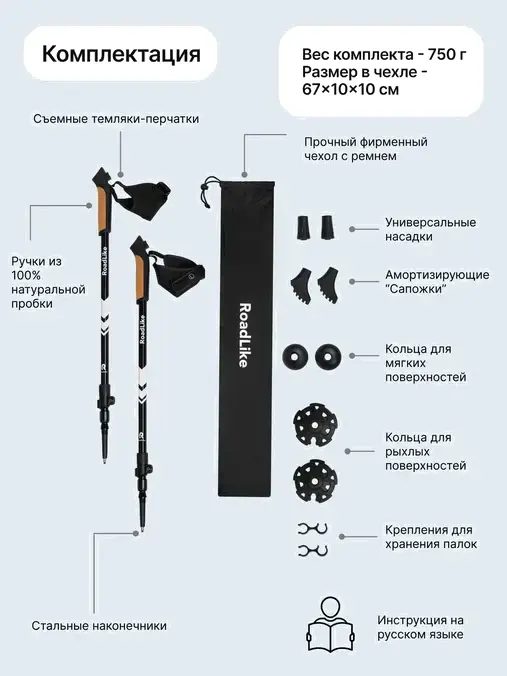 Палка для скандинавской ходьбы RoadLike Protect / 432076 (белый)