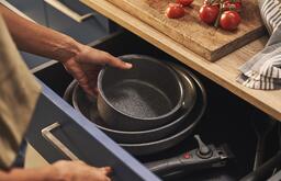 • Дополнительно совместимость с индукциеймытье в посудомойкеиспользование в духовке / до 230 °С /съемные ручки