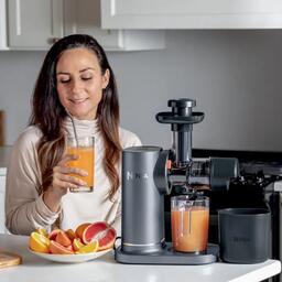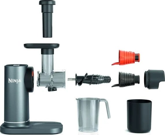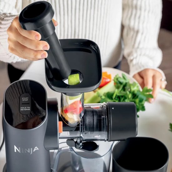✅ Соковыжималка Ninja JC151EU создана для эффективного и бережного приготовления свежих соков из фруктов, овощей и ягод. Благодаря технологии холодного отжима, устройство сохраняет максимум витаминов и натуральный вкус каждого ингредиента, не перегревая и не окисляя напиток. Мощный 150-ваттный мотор и усовершенствованный шнек обеспечивают высокий выход сока и минимальное количество отходов, а также ровную, насыщенную текстуру без лишней пены.✅ В комплект входят два сменных фильтра, которые позволяют регулировать количество мякоти в напитке по вашему вкусу — от прозрачного фреша до густых соков и смузи. Простое механическое управление включает режимы старт, стоп и реверс, что делает процесс отжима максимально удобным и понятным. Реверс помогает быстро справиться с застрявшими кусочками, не разбирая устройство.✅ Ninja JC151EU отличается тихой работой и продуманной конструкцией, предотвращающей разбрызгивание жидкости. Все съемные детали, кроме моторного блока, можно мыть в посудомоечной машине, что значительно облегчает уход. Компактные размеры и современный дизайн делают соковыжималку отличным выбором даже для небольшой кухни.✅ В комплекте вы найдете кувшин для сока, контейнер для мякоти, два фильтра, загрузочный лоток с антикапельным носиком, носик для выброса мякоти, тампер и книгу рецептов от шефов Ninja. Это надежное и удобное устройство позволит вам регулярно наслаждаться полезными и вкусными напитками, заботясь о здоровье всей семьи.✅ Соковыжималка Ninja JC151EU создана для эффективного и бережного приготовления свежих соков из фруктов, овощей и ягод. Благодаря технологии холодного отжима, устройство сохраняет максимум витаминов и натуральный вкус каждого ингредиента, не перегревая и не окисляя напиток. Мощный 150-ваттный мотор и усовершенствованный шнек обеспечивают высокий выход сока и минимальное количество отходов, а также ровную, насыщенную текстуру без лишней пены.✅ В комплект входят два сменных фильтра, которые позволяют регулировать количество мякоти в напитке по вашему вкусу — от прозрачного фреша до густых соков и смузи. Простое механическое управление включает режимы старт, стоп и реверс, что делает процесс отжима максимально удобным и понятным. Реверс помогает быстро справиться с застрявшими кусочками, не разбирая устройство.✅ Ninja JC151EU отличается тихой работой и продуманной конструкцией, предотвращающей разбрызгивание жидкости. Все съемные детали, кроме моторного блока, можно мыть в посудомоечной машине, что значительно облегчает уход. Компактные размеры и современный дизайн делают соковыжималку отличным выбором даже для небольшой кухни.✅ В комплекте вы найдете кувшин для сока, контейнер для мякоти, два фильтра, загрузочный лоток с антикапельным носиком, носик для выброса мякоти, тампер и книгу рецептов от шефов Ninja. Это надежное и удобное устройство позволит вам регулярно наслаждаться полезными и вкусными напитками, заботясь о здоровье всей семьи.