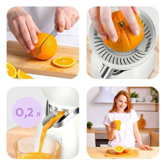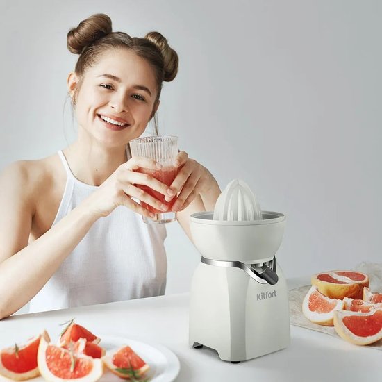 ✅Соковыжималка для цитрусовых Kitfort КТ-1178 предназначена для быстрого и эффективного получения свежего сока из лимонов, апельсинов, грейпфрутов и других цитрусовых. Благодаря конструкции, не требуется полностью очищать фрукты от кожуры, что значительно экономит время и сохраняет максимум полезных веществ.✅Устройство оснащено двумя конусами для разных размеров плодов:малый для лимонов и лаймов, а большой - для апельсинов и грейпфрутов. Конус автоматически меняет направление вращения при затруднении, обеспечивая максимальный отжим сока и защищая двигатель от перегрузки.✅В комплекте предусмотрен фильтр, который предотвращает попадание крупных кусочков и косточек в сок, делая его чистым и однородным. Емкость контейнера для сока составляет 0.2 л, что удобно для получения одной-двух порций свежего напитка.✅Пластиковые детали легко снимаются и моются, а прорезиненные ножки обеспечивают устойчивость и безопасность при работе. Регулярное употребление свежевыжатого цитрусового сока способствует укреплению иммунитета и поддержанию здоровья сердца и сосудов.✅Соковыжималка для цитрусовых Kitfort КТ-1178 предназначена для быстрого и эффективного получения свежего сока из лимонов, апельсинов, грейпфрутов и других цитрусовых. Благодаря конструкции, не требуется полностью очищать фрукты от кожуры, что значительно экономит время и сохраняет максимум полезных веществ.✅Устройство оснащено двумя конусами для разных размеров плодов:малый для лимонов и лаймов, а большой - для апельсинов и грейпфрутов. Конус автоматически меняет направление вращения при затруднении, обеспечивая максимальный отжим сока и защищая двигатель от перегрузки.✅В комплекте предусмотрен фильтр, который предотвращает попадание крупных кусочков и косточек в сок, делая его чистым и однородным. Емкость контейнера для сока составляет 0.2 л, что удобно для получения одной-двух порций свежего напитка.✅Пластиковые детали легко снимаются и моются, а прорезиненные ножки обеспечивают устойчивость и безопасность при работе. Регулярное употребление свежевыжатого цитрусового сока способствует укреплению иммунитета и поддержанию здоровья сердца и сосудов.