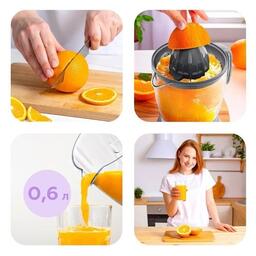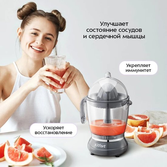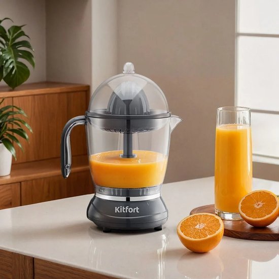 ✅Соковыжималка для цитрусовых Kitfort КТ-1177 станет отличным помощником для быстрого приготовления свежего сока из лимонов, апельсинов, грейпфрутов и других цитрусовых. Благодаря двум сменным конусам разных размеров, устройство подходит как для небольших, так и для крупных плодов, не требуя удаления кожуры — достаточно просто разрезать фрукт пополам.✅Управление максимально просто:для начала работы нужно лишь надавить половинкой фрукта на конус, который начнёт вращаться. Особенностью модели является автоматическая смена направления вращения, что обеспечивает максимальную выжимку сока и защищает двигатель от перегрузок.✅Фильтр надежно задерживает крупные кусочки мякоти и косточки, сохраняя чистоту и однородность напитка. Готовый сок собирается в пластиковом контейнере объёмом 0.6 л, из которого его легко перелить в стакан, чтобы сохранить свежесть и аромат.✅Все разборные элементы — крышка, конусы, фильтр, чаша и шпиндель — легко снимаются и моются. Прорезиненные ножки делают работу устройства устойчивой и безопасной, предотвращая скольжение по столу. Компактные размеры и небольшой вес позволяют удобно хранить соковыжималку даже на небольшой кухне.✅Соковыжималка для цитрусовых Kitfort КТ-1177 станет отличным помощником для быстрого приготовления свежего сока из лимонов, апельсинов, грейпфрутов и других цитрусовых. Благодаря двум сменным конусам разных размеров, устройство подходит как для небольших, так и для крупных плодов, не требуя удаления кожуры — достаточно просто разрезать фрукт пополам.✅Управление максимально просто:для начала работы нужно лишь надавить половинкой фрукта на конус, который начнёт вращаться. Особенностью модели является автоматическая смена направления вращения, что обеспечивает максимальную выжимку сока и защищает двигатель от перегрузок.✅Фильтр надежно задерживает крупные кусочки мякоти и косточки, сохраняя чистоту и однородность напитка. Готовый сок собирается в пластиковом контейнере объёмом 0.6 л, из которого его легко перелить в стакан, чтобы сохранить свежесть и аромат.✅Все разборные элементы — крышка, конусы, фильтр, чаша и шпиндель — легко снимаются и моются. Прорезиненные ножки делают работу устройства устойчивой и безопасной, предотвращая скольжение по столу. Компактные размеры и небольшой вес позволяют удобно хранить соковыжималку даже на небольшой кухне.