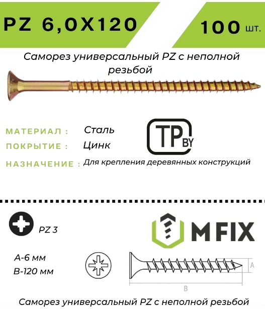 - Тип шлица крестовой с насечками Pozidriv (PZ)