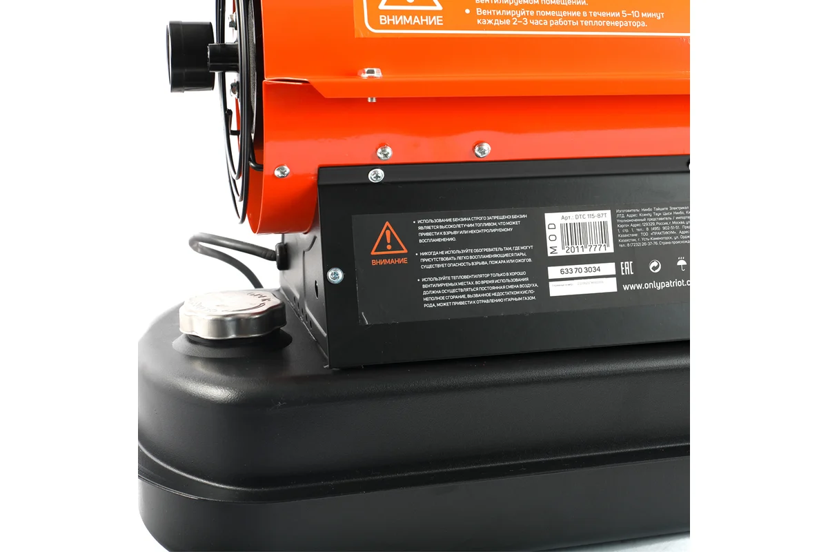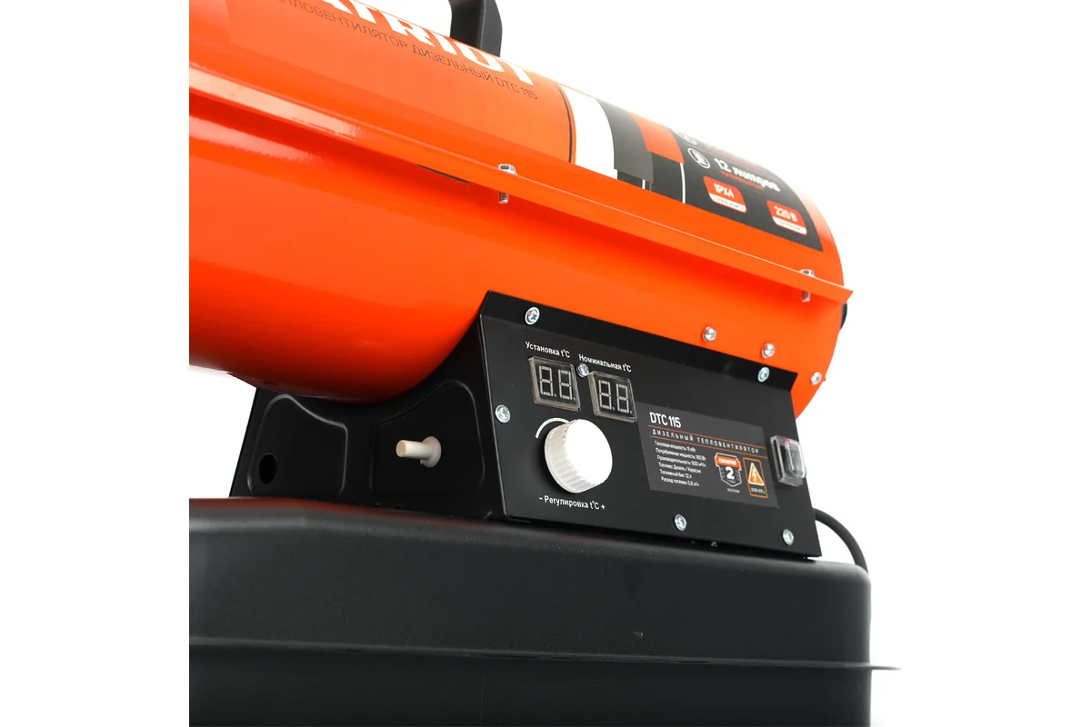 Калорифер дизельный PATRIOT DTС 115 633703034 применяется на разных этапах строительства: от отделки и ремонта помещения, сушки штукатурки и фасадов до размораживания траншей. Прибор мощностью 12 кВт используется на открытых площадках или в проветриваемых помещениях.