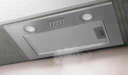 Вытяжка работает в режимах отвода и циркуляции, поэтому загрязнения удаляются из комнаты и перенаправляются в воздуховод, при этом можно очистить воздух и использовать повторно за счет возвращения его в помещение. Количество скоростей в этой модели: 3 шт. При этом максимальная производительность составляет 660 куб.м./ч. Уровень шума при полной загруженности — 58 дБ.