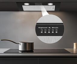 Встраиваемая вытяжка — выбор тех, кто хочет максимально задекорировать технику, или владельцев маленькой кухни. Тип встраивания: в шкаф. Обратите внимание на цветовые сочетания модели Zigmund Shtain K 016.5 B, чтобы органично вписать ее в свою квартиру. Оттенок корпуса: черный. Благодаря лампочкам, которые расположены на нем, можно освещать плиту и столешницу рядом, чтобы готовить было еще проще и приятнее.