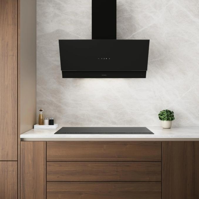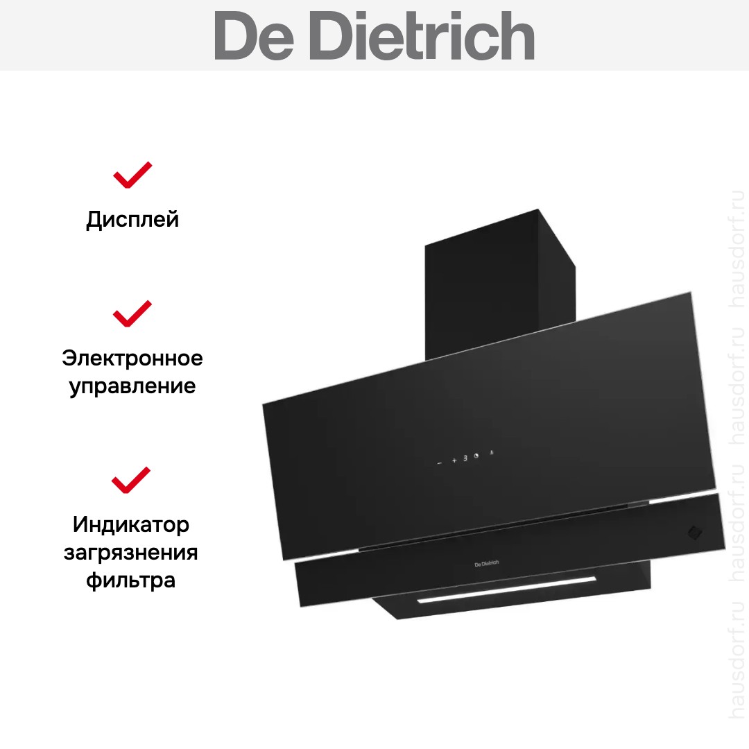 Данная вытяжка крепится на стену и имеет наклонную фронтальную панель, что придает изюминку дизайну и позволяет сохранить свободное рабочее пространство внизу. Обратите внимание на цветовые сочетания модели De Dietrich DHV4973PB, чтобы органично вписать ее в свою квартиру. Оттенок корпуса: черный. Благодаря лампочкам, которые расположены на нем, можно освещать плиту и столешницу рядом, чтобы готовить было еще проще и приятнее.