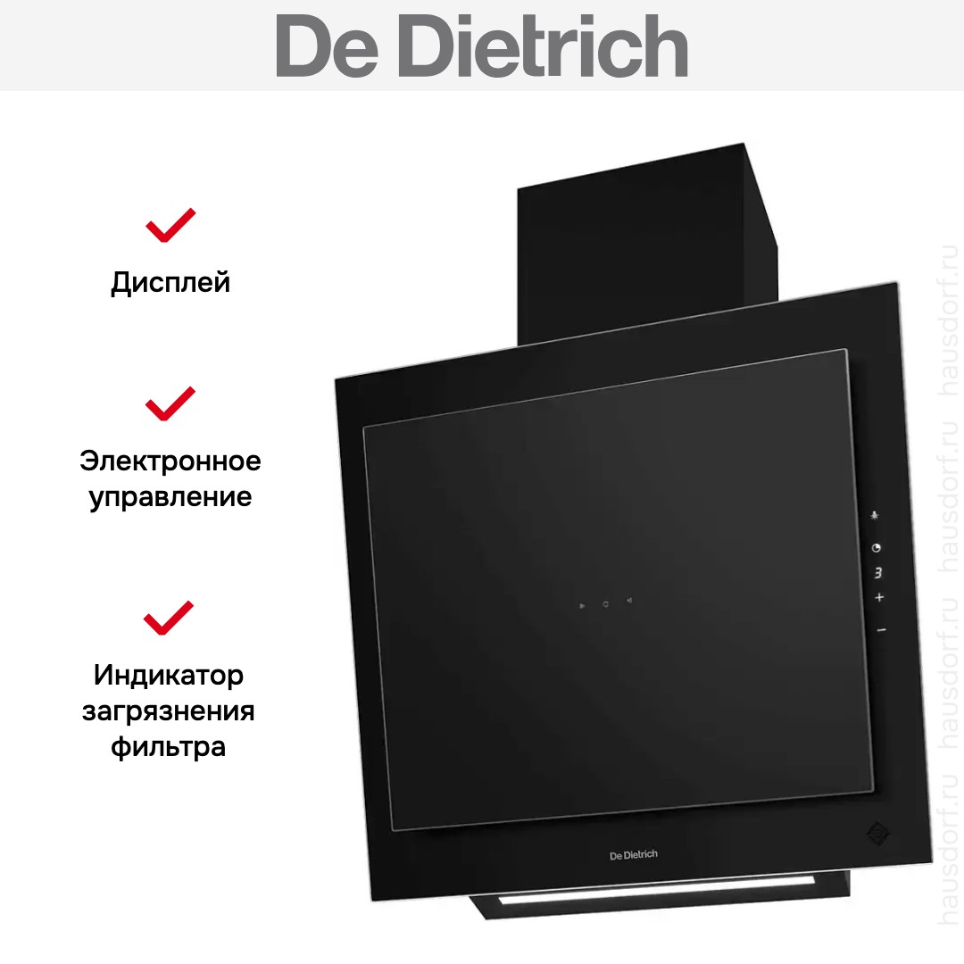 Данная вытяжка крепится на стену и имеет наклонную фронтальную панель, что придает изюминку дизайну и позволяет сохранить свободное рабочее пространство внизу. Обратите внимание на цветовые сочетания модели De Dietrich DHV4684B, чтобы органично вписать ее в свою квартиру. Оттенок корпуса: черный. Благодаря лампочкам, которые расположены на нем, можно освещать плиту и столешницу рядом, чтобы готовить было еще проще и приятнее.