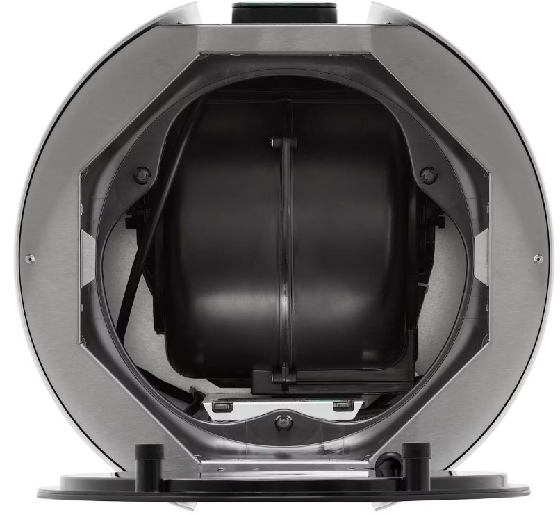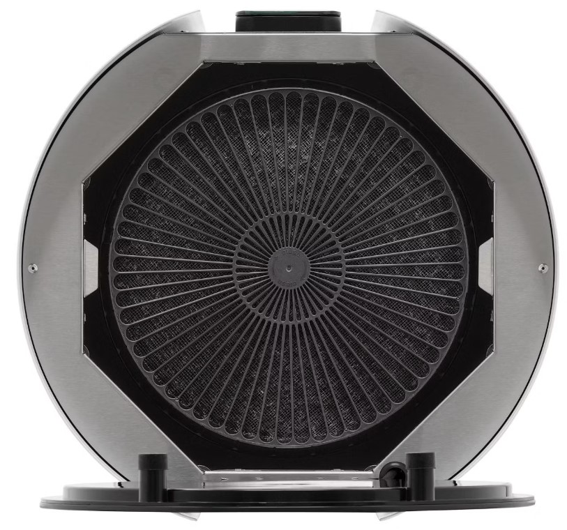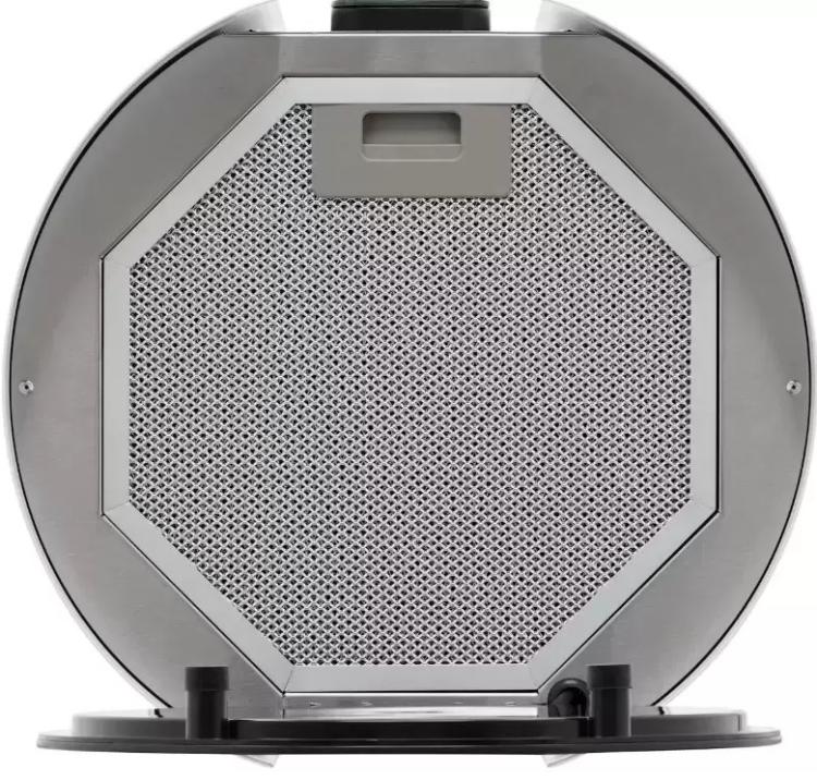 Вытяжка работает в режиме циркуляции, поэтому воздух пропускается через фильтры, очищается и возвращается в комнату. Количество скоростей в этой модели: 9 шт. При этом максимальная производительность составляет 1000 куб.м./ч. Уровень шума при полной загруженности — 46 дБ.