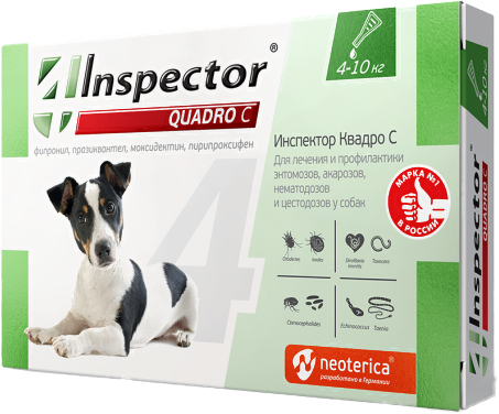 - Защита от клещей иксодовых, от клещей ушных, от клещей подкожных, от блох, от вшей, от власоедов, от круглых гельминтов, от ленточных гельминтов, от дирофиляриоза, от личинок гельминтов