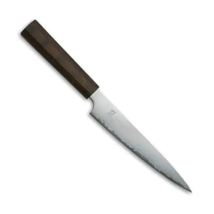 Ніж серії Hana від Yaxell підходить для щоденного використання на професійній або домашній кухні, оскільки витримує будь-яке робоче навантаження. В основі високоякісної сталі Movax (хром, молібден, ванадій) покрита захисними обкладками з 3 шарів нержавіючої сталі. Преміальна восьмикутна темно-коричнева ручка Pakka Wood (композит дерева та смоли), розроблена досвідченими дизайнерами Yaxell, забезпечує ідеальний баланс та оптимальний контроль. Поєднання матеріалів та дизайну Yaxell забезпечує відмінний зовнішній вигляд та зручність нарізки, що робить ці ножі найкращим вибором на кухні. Це ідеальний вибір як для професійних шеф-кухарів, так і для домашніх кухарів-ентузіастів, які шукають високу якість, довговічність та сучасність на своїй кухні.