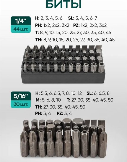 • Посадочный размер (квадрат) 1/4", 3/8", 1/2"