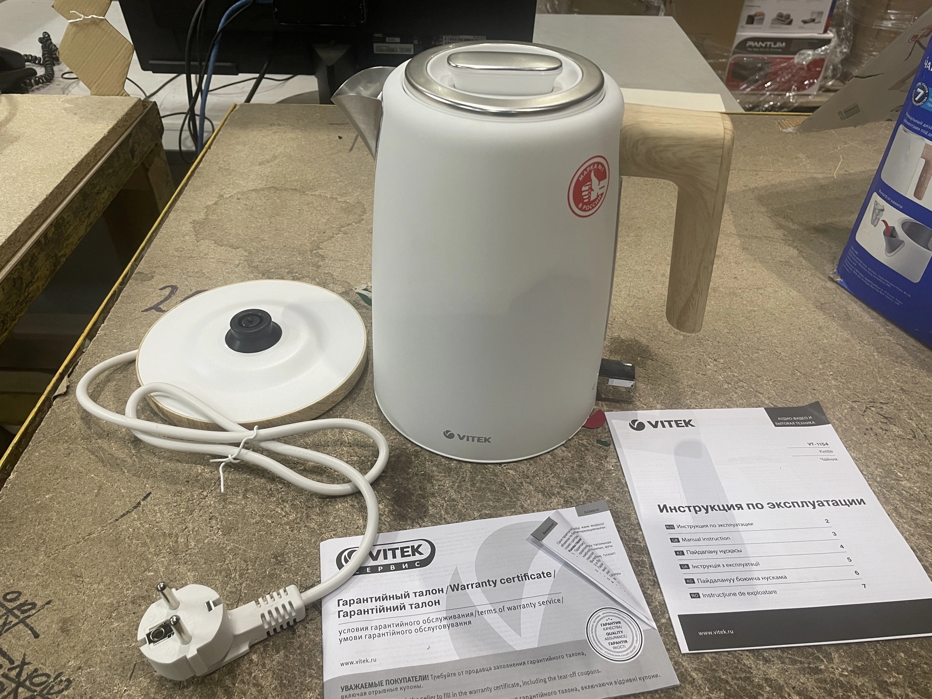Чайник Vitek VT-1154 1.7л. 2200Вт белый/дерево (металл/пластик) (уценка)