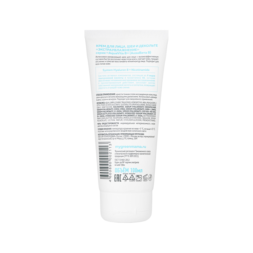 Крем для лица, шеи и декольте `GREEN MAMA` `AQUA VITA 8` экстра увлажнение 100 мл