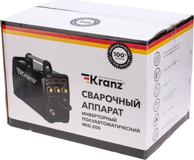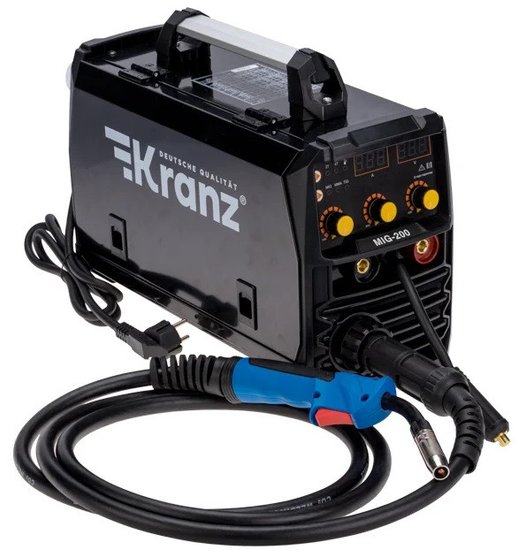 ✅ Сварочный инвертор Kranz MIG-200 — это компактный и надежный полуавтомат, идеально подходящий для сварки MIG/MAG/MMA. Он станет отличным помощником как для домашних мастеров, так и для профессионалов, выполняющих работы на строительных объектах, в гараже или на даче. Работает от стандартной сети 220 В, что делает его удобным в использовании.✅ Эта модель предлагает полный комплект для сварочных работ и поддерживает как прямую, так и обратную полярность. Сварка с электродами диаметром 2-5 мм становится легкой благодаря плавной регулировке сварочного тока и функции легкого старта, что обеспечивает быстрый поджег дуги без лишних брызг.✅ Среди ключевых функций аппарата — поджег повышенным током (антиприлипание), форсаж дуги в режиме ММА и HotStart, что значительно упрощает процесс сварки. Также предусмотрено дожигание сварочной проволоки и защита от перепадов напряжения, что гарантирует безопасность и надежность в работе. Возможность использования порошковой проволоки расширяет область применения устройства, делая его универсальным инструментом для сварки. ⚠️ Kranz MIG-200 — это идеальный выбор для тех, кто ищет качественный сварочный инвертор для выполнения различных задач.✅ Сварочный инвертор Kranz MIG-200 — это компактный и надежный полуавтомат, идеально подходящий для сварки MIG/MAG/MMA. Он станет отличным помощником как для домашних мастеров, так и для профессионалов, выполняющих работы на строительных объектах, в гараже или на даче. Работает от стандартной сети 220 В, что делает его удобным в использовании.✅ Эта модель предлагает полный комплект для сварочных работ и поддерживает как прямую, так и обратную полярность. Сварка с электродами диаметром 2-5 мм становится легкой благодаря плавной регулировке сварочного тока и функции легкого старта, что обеспечивает быстрый поджег дуги без лишних брызг.✅ Среди ключевых функций аппарата — поджег повышенным током (антиприлипание), форсаж дуги в режиме ММА и HotStart, что значительно упрощает процесс сварки. Также предусмотрено дожигание сварочной проволоки и защита от перепадов напряжения, что гарантирует безопасность и надежность в работе. Возможность использования порошковой проволоки расширяет область применения устройства, делая его универсальным инструментом для сварки. ⚠️ Kranz MIG-200 — это идеальный выбор для тех, кто ищет качественный сварочный инвертор для выполнения различных задач.