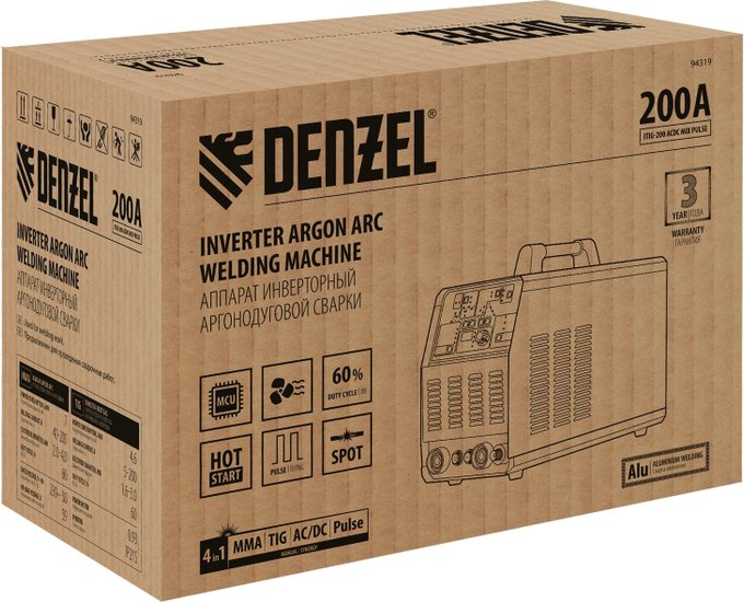 • Комплект поставки - Инвертор TIG-200 AC DC Mix Pulse;- Провод с зажимом «земля», 2 м;- Провод с электрододержателем, 2 м;- Рукав с горелкой для TIG сварки, 4 м;- Шланг газовый, 3 м;- Инструкция по эксплуатации с гарантийным талоном.