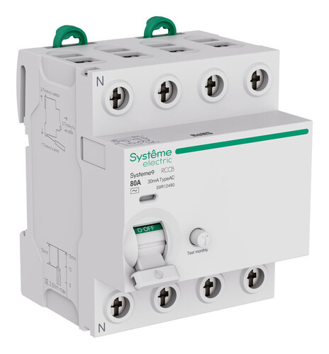Systeme Electric Systeme9 Выключатель дифференциального тока (ВДТ) 80A 4P 30мА Тип-AC 400В S9R12480 Systeme9