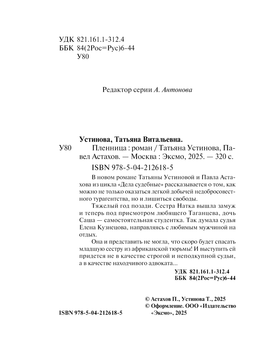 Книга Эксмо Пленница, мягкая обложка (Устинова Татьяна, Астахов Павел)