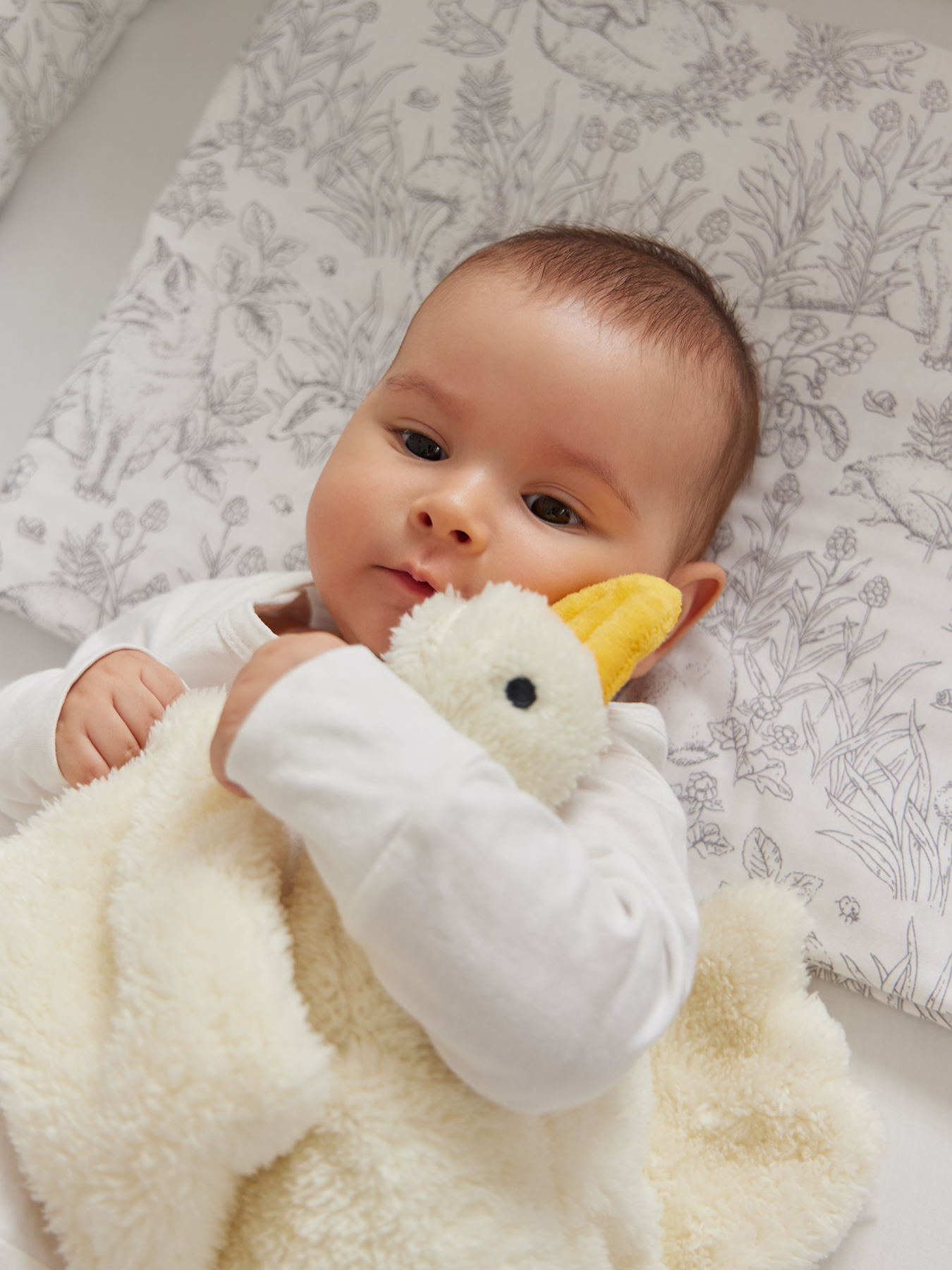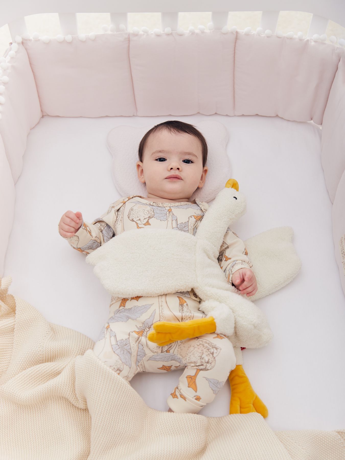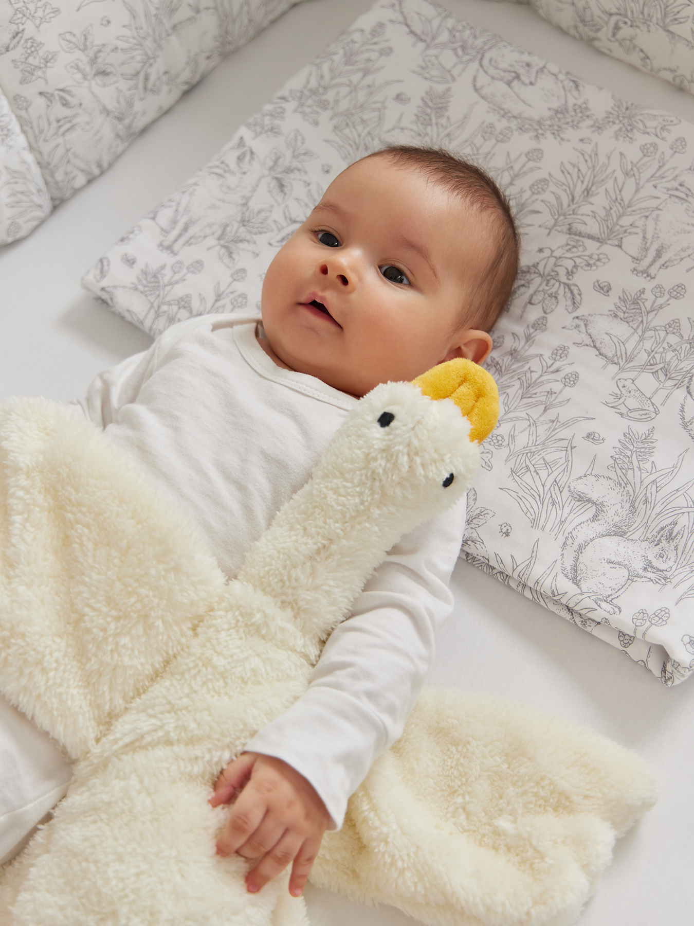 Уточка создана для нежных объятий. Приятная на ощупь, идеальной формы и размера – с ней приятно спать самым маленьким. Мягкие кармашки в крыльях согреют ручки малыша. Игрушка поможет успокоиться и заснуть ребенку.