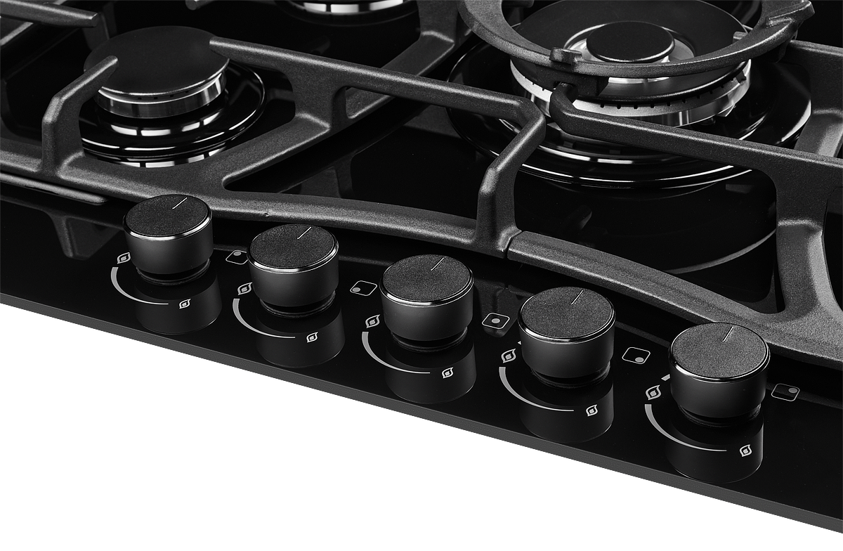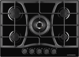 Встраиваемые газовые панели Kuppersberg/ Газовая варочная поверхность, закаленное стекло, ширина 70 см, 5 газовых конфорок, WOK конфорка(3,8 кВт), автоподжиг, газ-контроль, чугунные решетки, цвет чёрный