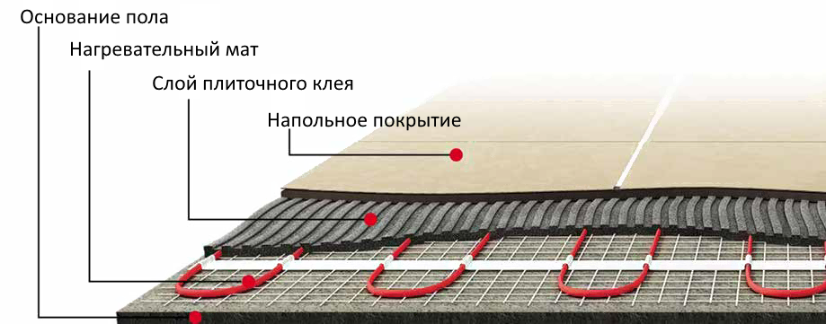 • Вид электрического теплого пола нагревательный мат