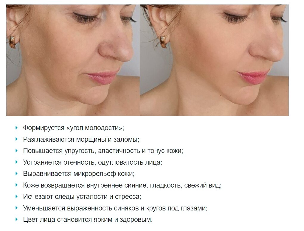 • Действие подтягивающее (лифтинг), омолаживающее, тонизирующее, осветляющее, повышает упругость, повышает эластичность, разглаживающее, противоотечное, улучшение кровообращения