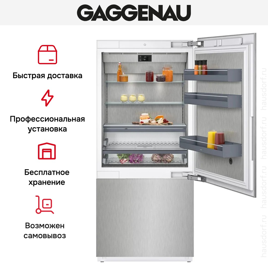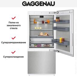 Встраиваемый холодильник с морозильником Gaggenau RB492305 — это воплощение инновационного подхода к организации хранения продуктов и изысканного дизайна для современной кухни. Модель отличается внушительными габаритами (212,5х90,8х60,8 см), что обеспечивает впечатляющий полезный объем — 555 литров, из которых 389 литров отведено под охлаждение, а 166 литров — под заморозку. Благодаря строгим линиям, возможности установки декоративного фасада и отсутствию выступающих элементов, техника гармонично интегрируется в любой интерьер. Встроенная ручка, элегантные металлические полки на дверце и внутреннее пространство из нержавеющей стали с анодированным алюминием подчеркивают премиальный статус устройства. Светодиодная подсветка с цветовой температурой 3500 К равномерно освещает содержимое, создавая ощущение уюта и комфорта при каждом открытии дверей.
