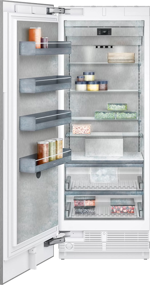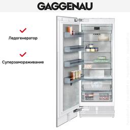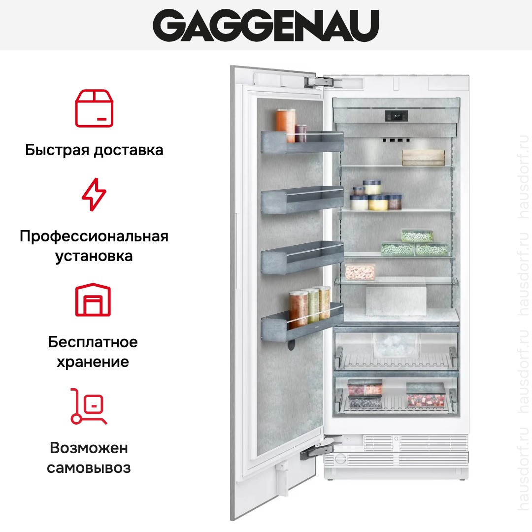 Встраиваемая морозильная камера Gaggenau RF471306 — это сочетание инновационных технологий, премиального дизайна и продуманной эргономики для современной кухни. Модель отличается внушительными размерами: высота составляет 212,5 см, ширина — 75,6 см, глубина — 60,8 см, что позволяет разместить внутри значительный объем продуктов. Благодаря строгой геометрии линий и лаконичному внешнему виду устройство гармонично интегрируется в любой кухонный фасад. Отсутствие ручки и система жесткого крепления door on door обеспечивают единую плоскость с мебелью, а цвет под навес вашего фасада позволяет подобрать индивидуальное оформление под интерьер. Внутренняя камера выполнена из нержавеющей стали и алюминия цвета антрацит, что не только придает особый стиль, но и гарантирует долговечность, легкость ухода и устойчивость к повреждениям.