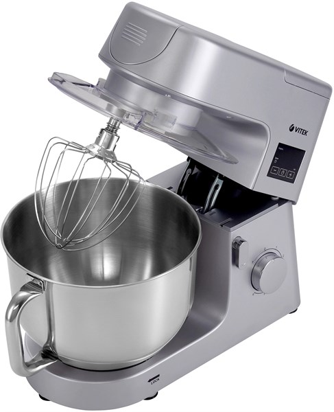 • Комплект поставки Миксер, чаша, защитный обод для чаши, насадка-венчик, насадка-лопатка, насадка-крюк, кулинарная силиконовая лопатка, книга рецептов, мануал с гарантийным талоном