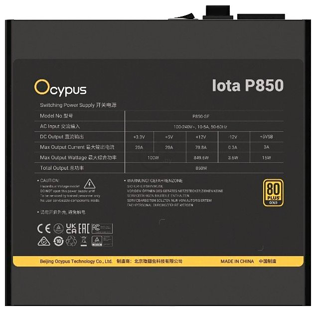 Блок питания для компьютера Ocypus Iota P850 850W Black (Iota-P850-G1FFBK024X-EU)