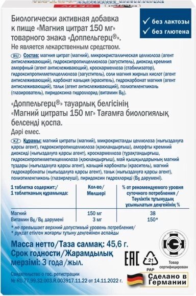 Витаминно-минеральный комплекс Doppelherz Актив Магния цитрат 150мг