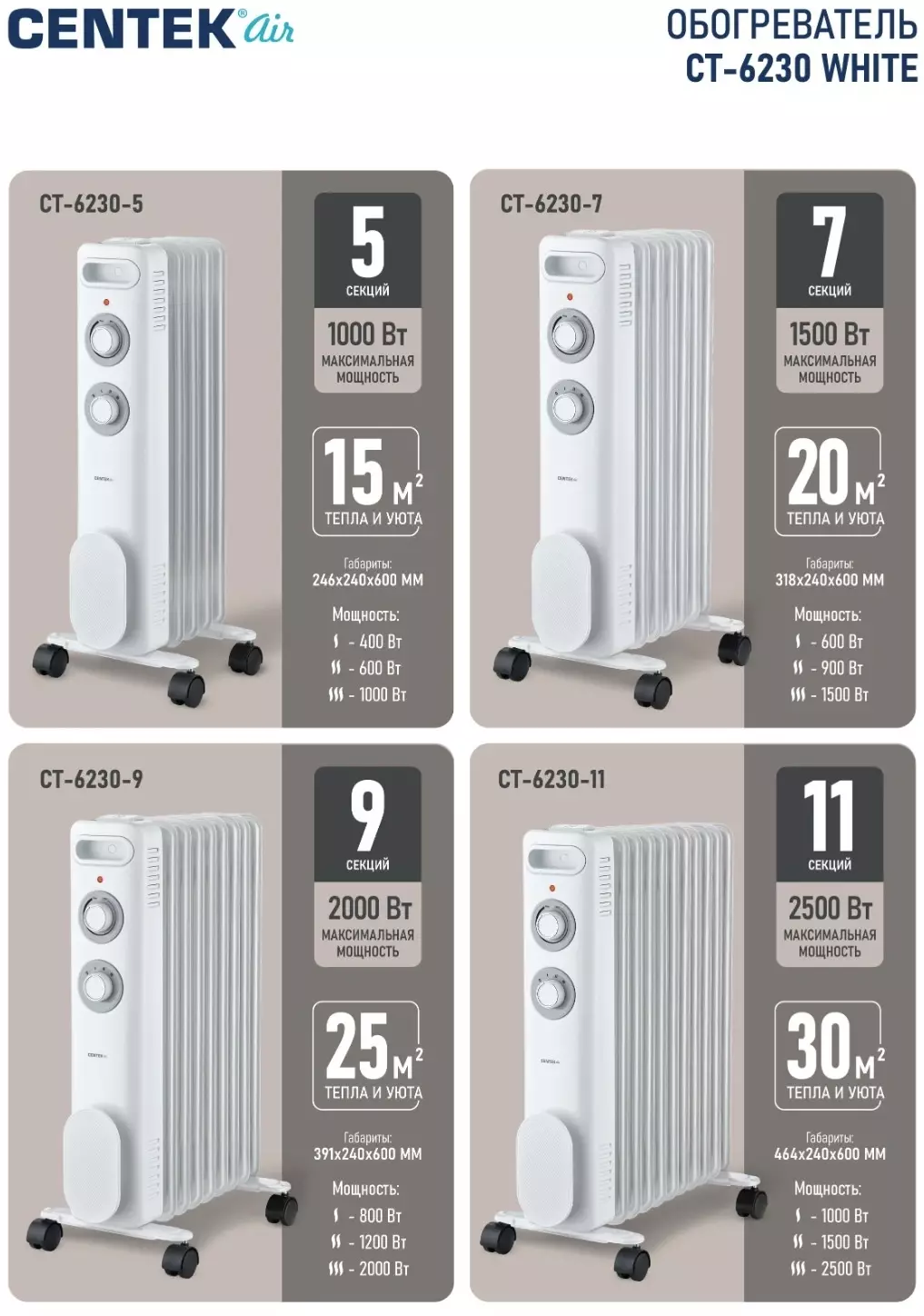 Масляный радиатор Centek CT-6230-5 белый (ct-6230-5 white)