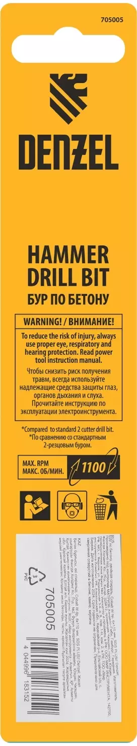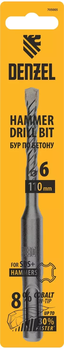 Бур Denzel 705005 по бетону Д=6мм Дл=110мм (1пред.) для перфораторов