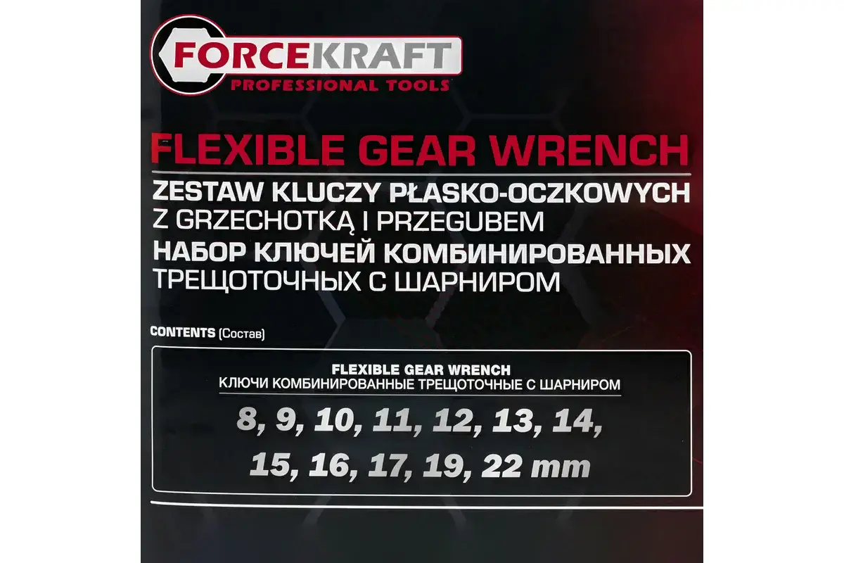 • Размер(ы) ключа (мм) 8, 9, 10, 11, 12, 13, 14, 15, 16, 17, 19, 22