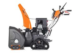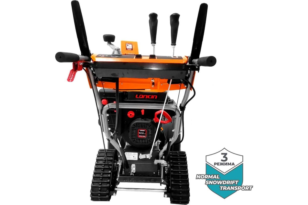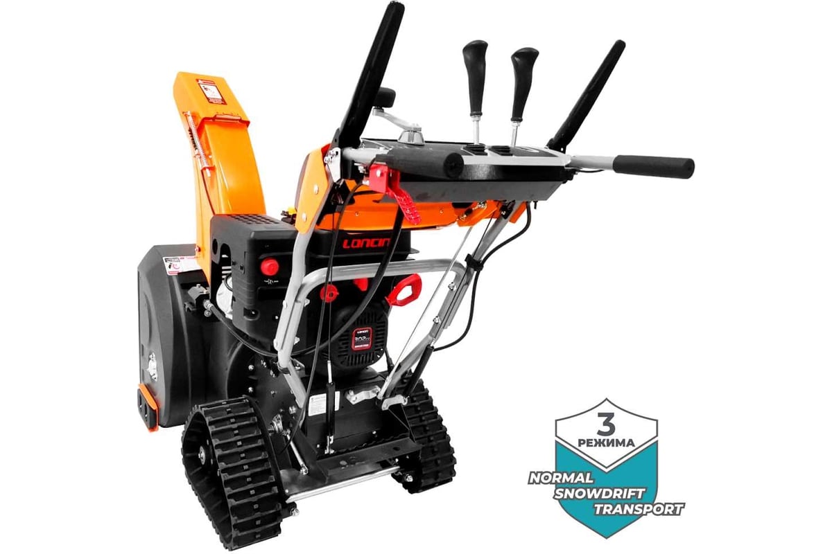 Бензиновый мотор LONCIN LC 180FDS с увеличенной мощностью до 302 куб. см. мгновенно запускается с помощью кнопки. Электростартер обеспечивает стабильное начало работы при любой погоде. Гусеничная часть вместо колес позволяет машине оставаться устойчивой на земле или парковках с тротуарами. Ширина ковша - 66 см, что подойдет для расчистки любых осадков до 54 см в высоту, включая слой наледи или плотных сугробов. Собранный стальным двухступенчатым шнеком снег отбрасывается по прочному желобу на расстояние до 15 метров. Обновленная кнопочная панель оператора позволяет легко настроить параметры выброса.