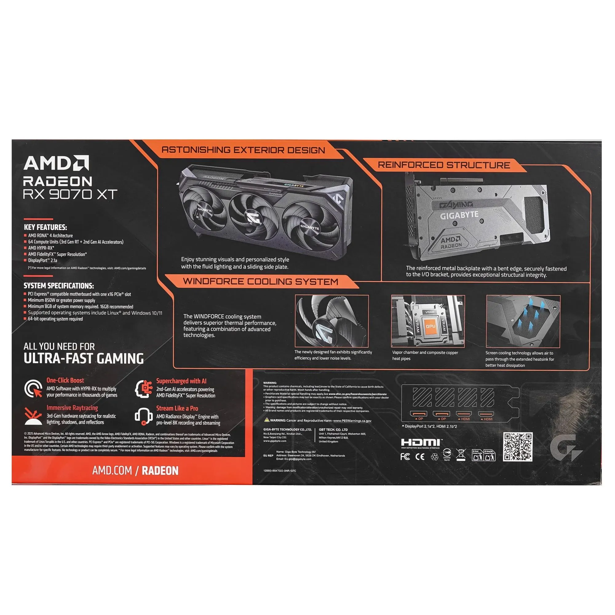 Описание товара Видеокарта Gigabyte PCI-E AMD Radeon RX 9070XT GAMING OC-16GD (GV-R9070XTGAMING OC-16GD)