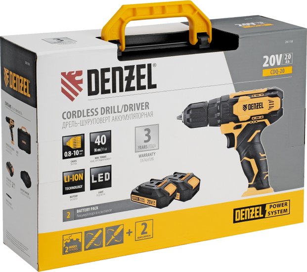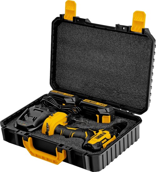 Комплектация- Дрель-шуруповерт аккумуляторная;- Батарея аккумуляторная 2 шт; - Устройство зарядное;- Бита двухсторонняя;- Инструкция по эксплуатации с гарантийным талоном;- Пластиковый кейс.