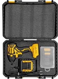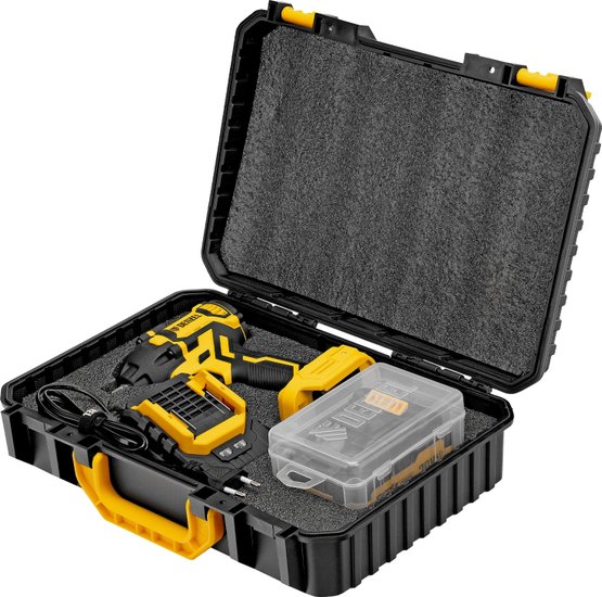 Комплектация- Гайковерт ударный аккумуляторный;- Батарея аккумуляторная;- Зарядное устройство;- Клипса для крепления на пояс;- Кейс;- Руководство по эксплуатации с гарантийным талоном.