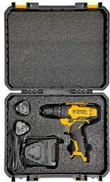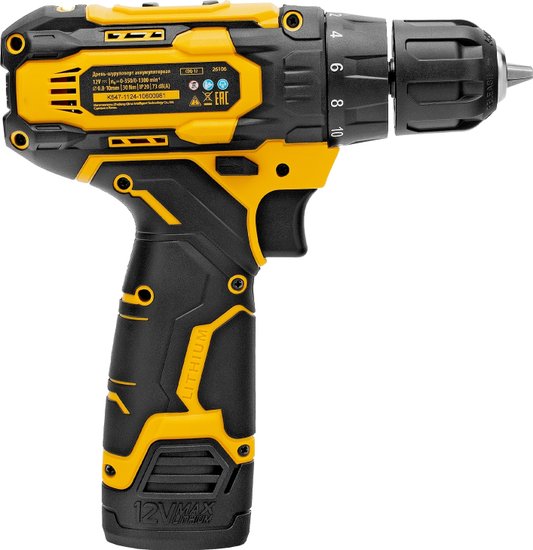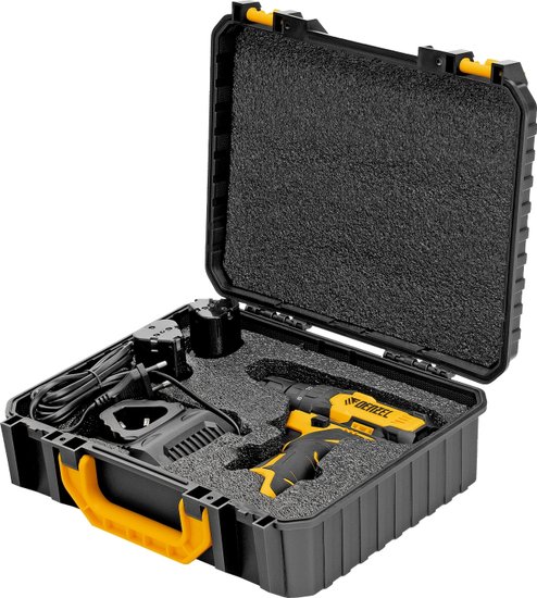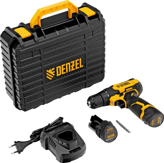 Комплектация- Дрель-шуруповерт аккумуляторная- Батарея аккумуляторная 2 шт - Устройство зарядное- Бита двухсторонняя- Инструкция по эксплуатации с гарантийным талоном- Пластиковый кейс