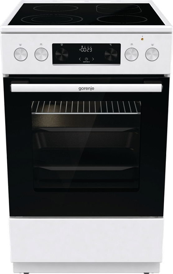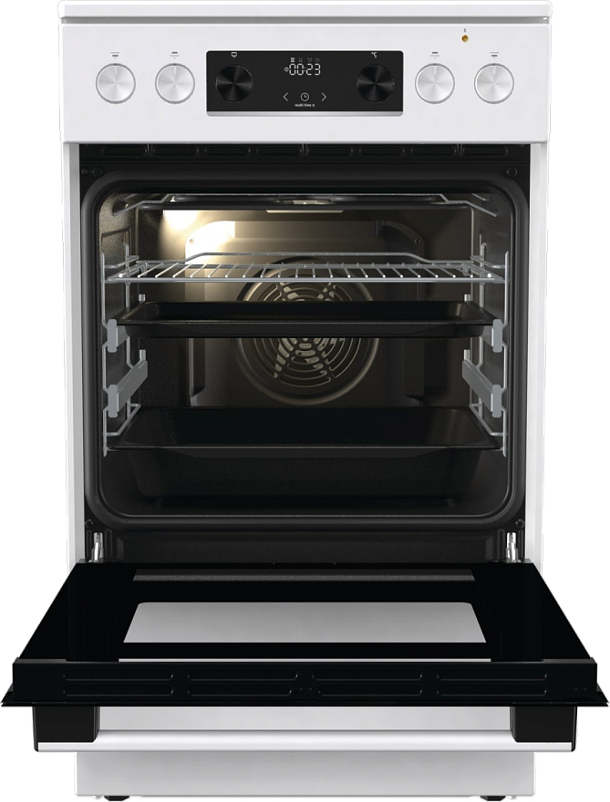 Плита Gorenje/ Плита Gorenje, полезный объем 70 л, эргономичные переключатели, сенсорный программатор IconLED, эмаль SilverMatte, очистка паром, индикатор остаточного тепла для каждой конфорки, телескопические направляющие на 2-х уровнях, дверца CompactDoor 2 стекла + 1 термослой, GentleClose, стеклокерамическая варочная панель, цвет белый