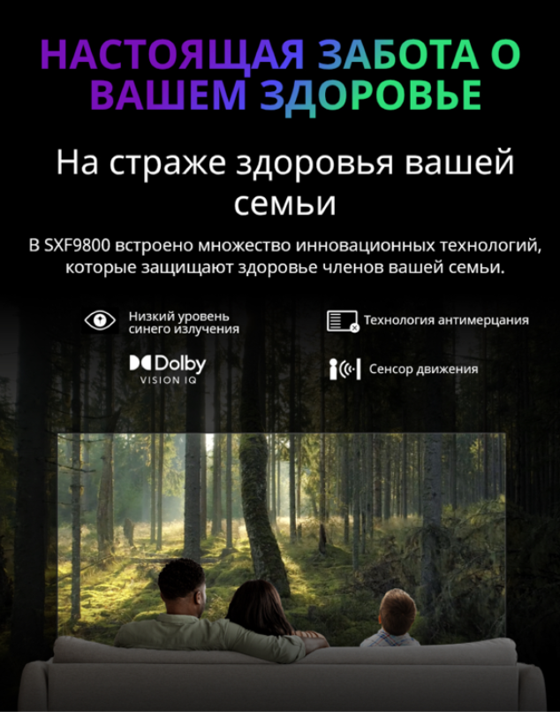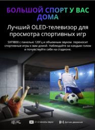 Звуковая система 2.1 мощностью 34 Вт (20 Вт сабвуфер) поддерживает Dolby Atmos для эффектного погружения. Для геймеров — HDMI 2.1, VRR и FreeSync Premium, что сводит к минимуму задержки и артефакты.